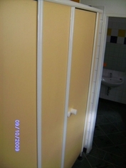 Knauf und Riegelolive mit Frei-/Besetztanzeige (rot/weiß). Einriegelschloss aus Nylon (Standard)